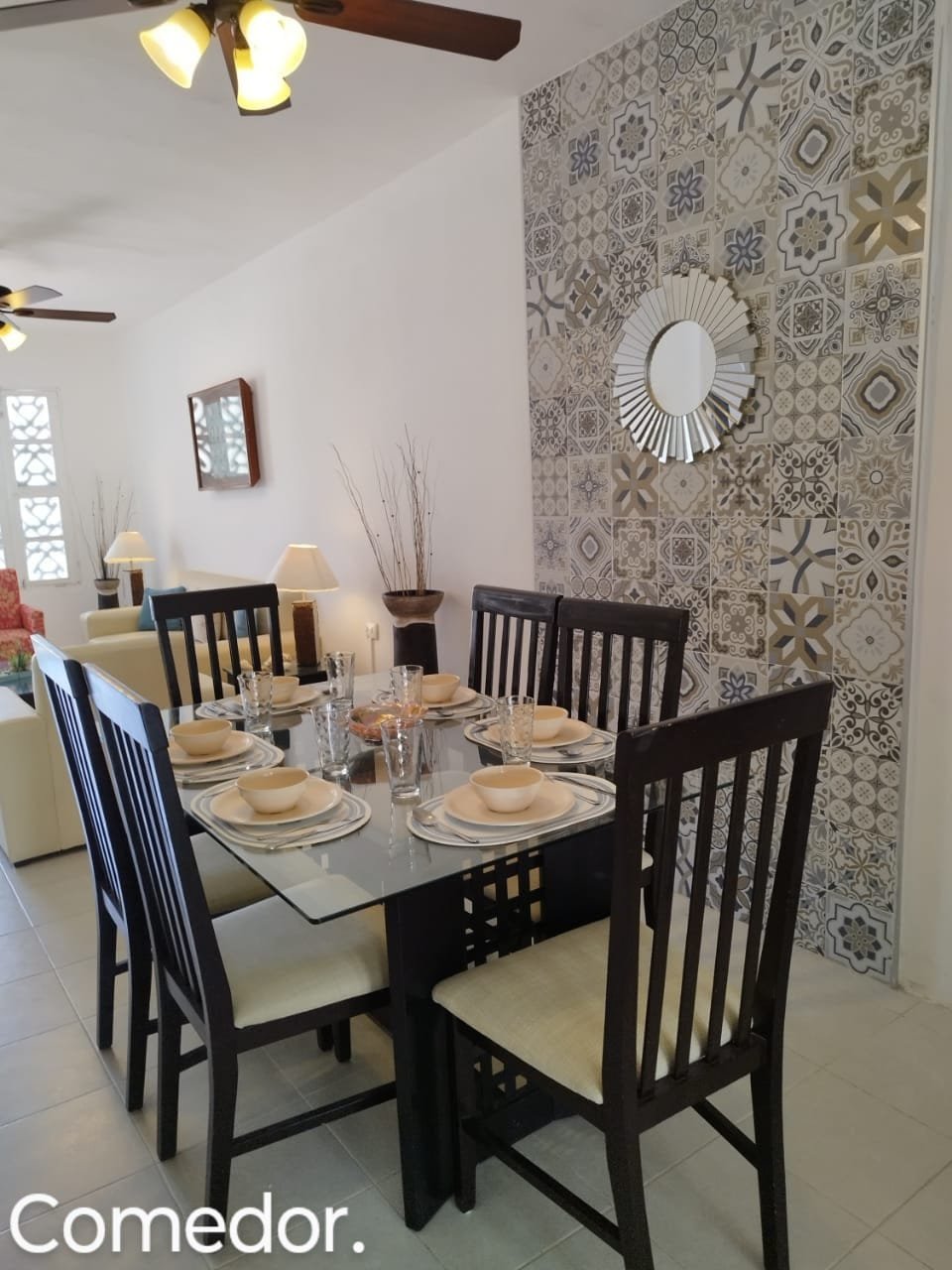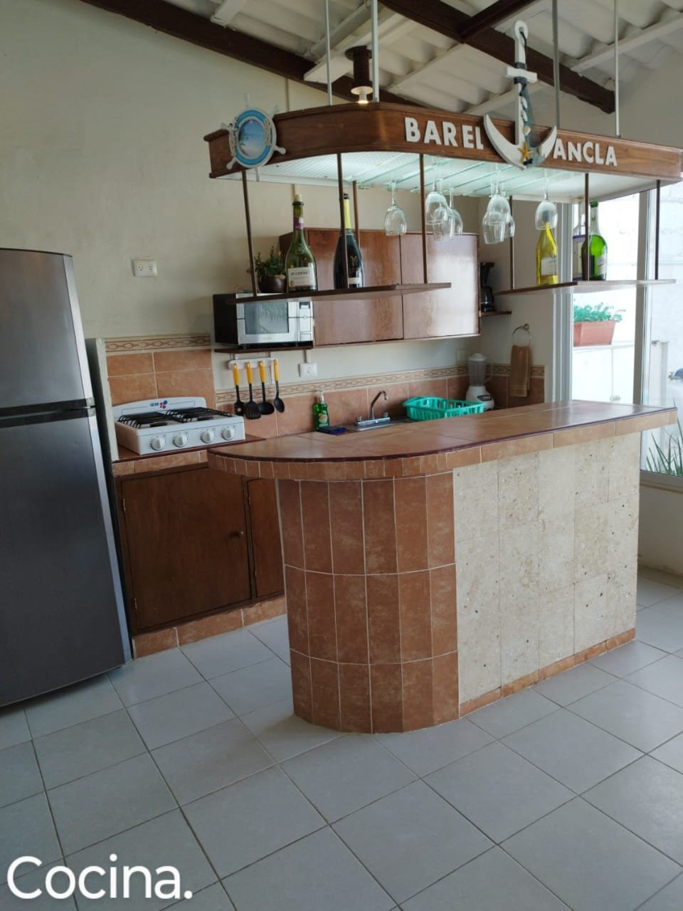 - Cocina con barra, equipada: Estufa. ( parrilla ), Refrigerador, Licuadora, Horno de microondas, Cafetera, Tostador, Ollas, sartenes y utensilios de cocina, Platos, vasos, tazas, copas y cubiertos para 8 personas.
