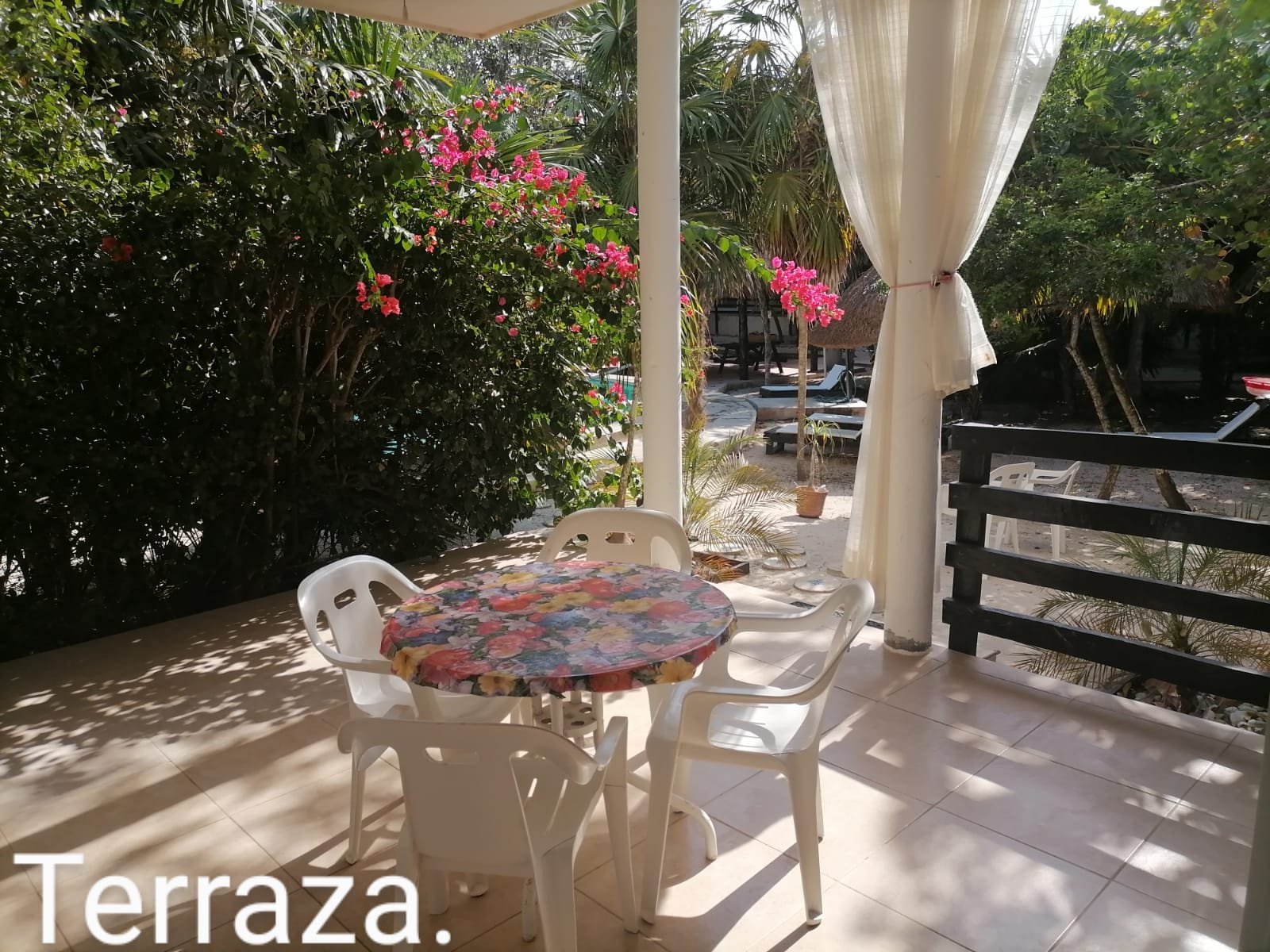 - Terraza con vista a la calle de playa con mesa y 6 sillas.
