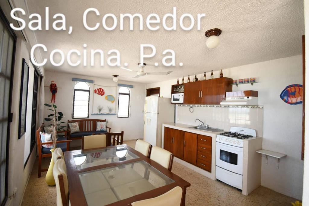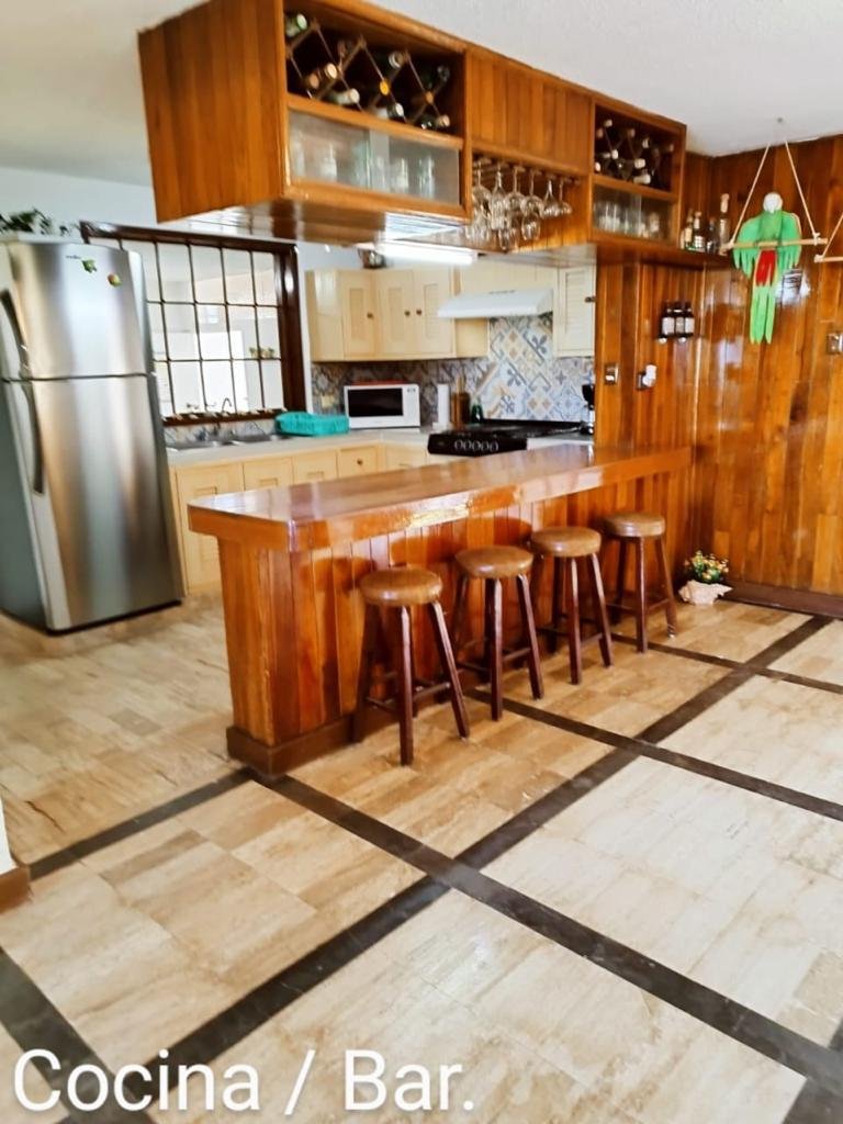 - 2 cocinas: Estufa, refrigerador, licuadora, horno de microondas, cafetera, tostador, ollas y utensilios de cocina, latos, vasos, tazas, copas y cubiertos para 16 personas.